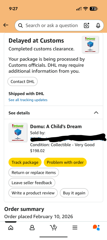 Paid the customs tax. Hopefully now there’s nothing left to do.