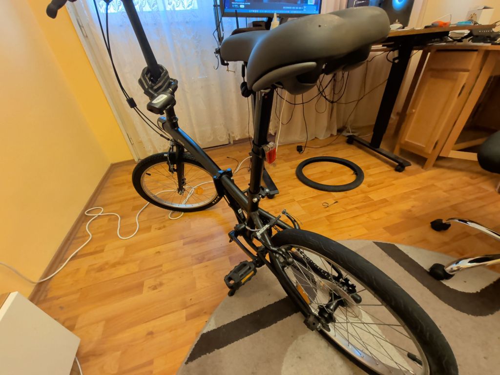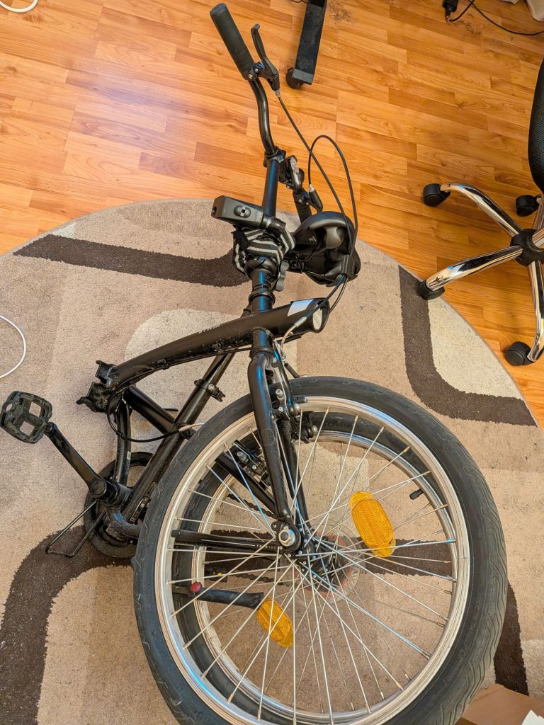 I bought a BTWIN Fold 100 bike for dirt cheap in March 2024. It was, at the time, a whopping €230,34 / $250,43 at the time, and that’s including the €9 kickstand I bought separately. It was a very good investment, as I live in an apartment and like to travel by train a lot, on account of now owning a car (or a driver’s license). I can easily use my bike to ride around the city, fold it and take it by train to another place, ride there some more, you get the point. It’s small and lots of fun.