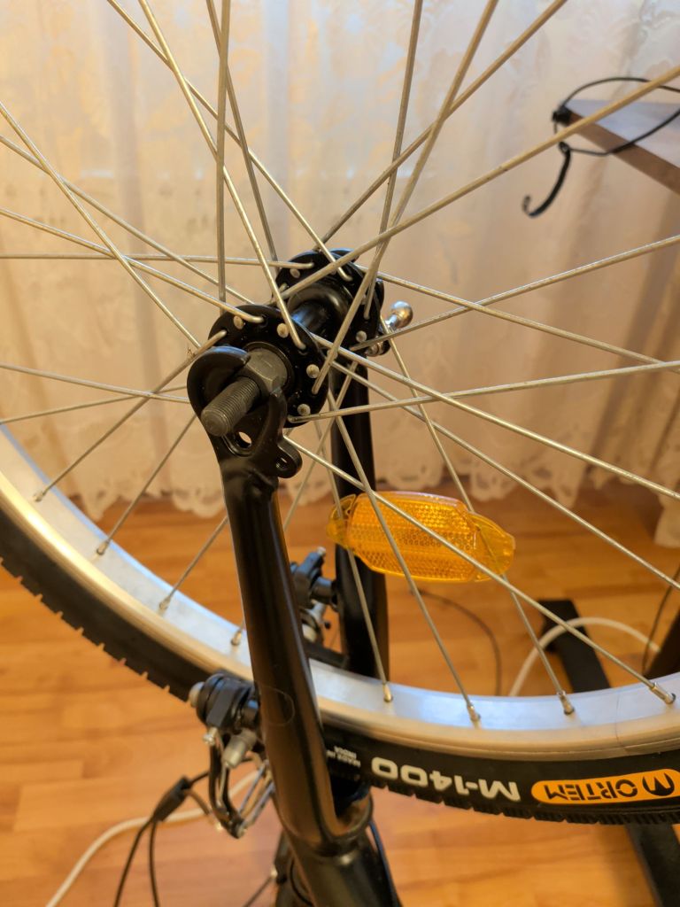 The two drawbacks of this bike are the lack of gears and the lack of proper suspension. This means that it can only go as fast as I pedal, and each pebble is felt from my gluteus maximus to my teeth. Fun. Living in a big metropolis with not a lot of care put into bike lanes means that I have to mount the curb pretty often, which is not only inconvenient for me and the pedestrians, but it also does a lot of wear to the wheels, particularly the front wheel. It would deflate every couple of rides, so each day I took the bike out I had to work on my arm muscles first and pump some air into the tires.